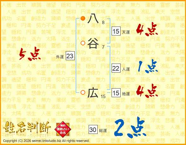 八谷広さんの総運は30画の2点!