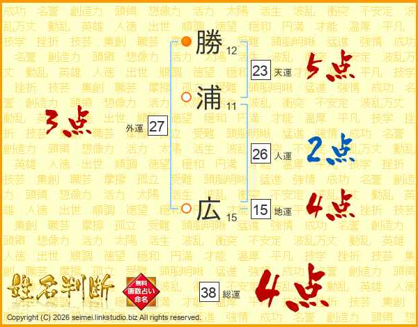勝浦広さんの総運は38画の4点!