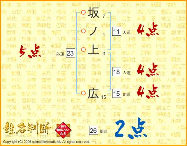 坂(7画)ノ(1画)上(3画) 広(15画)