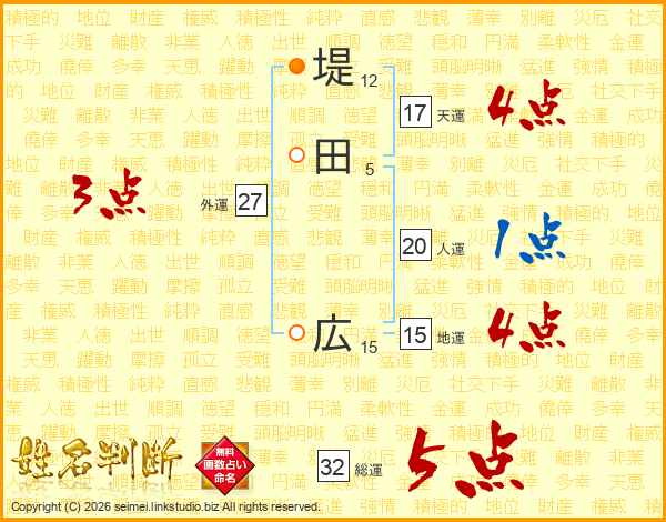 堤田広さんの総運は32画の5点!