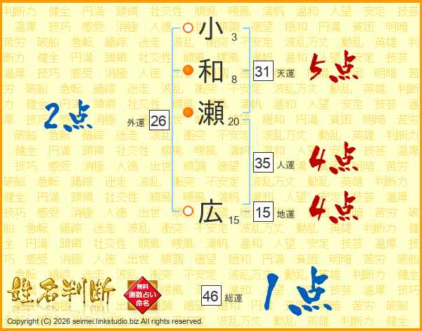 小和瀬広さんの総運は46画の1点!