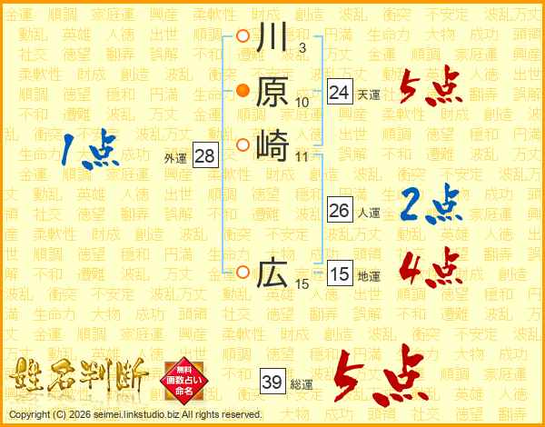 川原崎広さんの総運は39画の5点!
