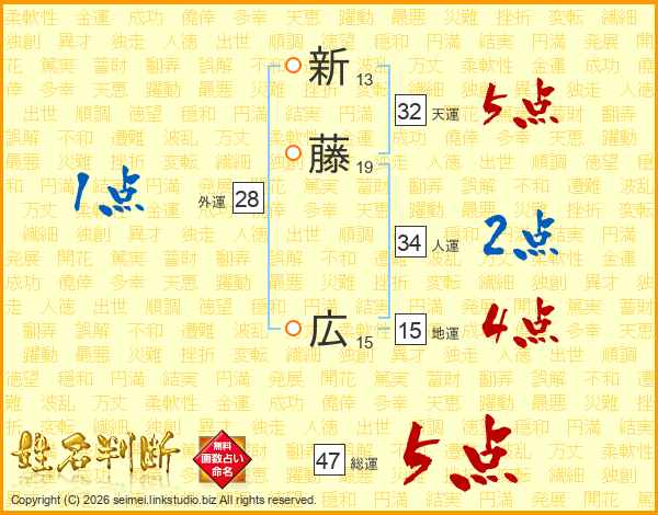 新藤広さんの総運は47画の5点