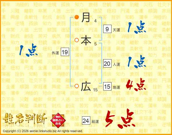 月本広さんの総運は24画の5点!