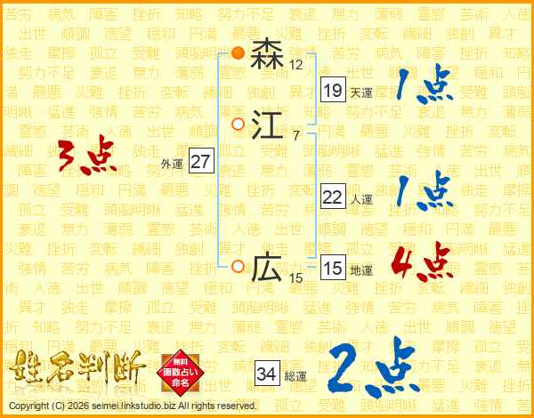 森(12画)江(7画) 広(15画)