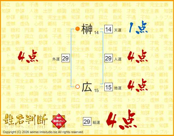 榊広さんの総運は29画の4点!
