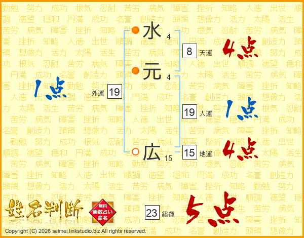 水元広さんの総運は23画の5点!