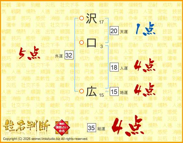 沢口広さんの総運は35画の4点!