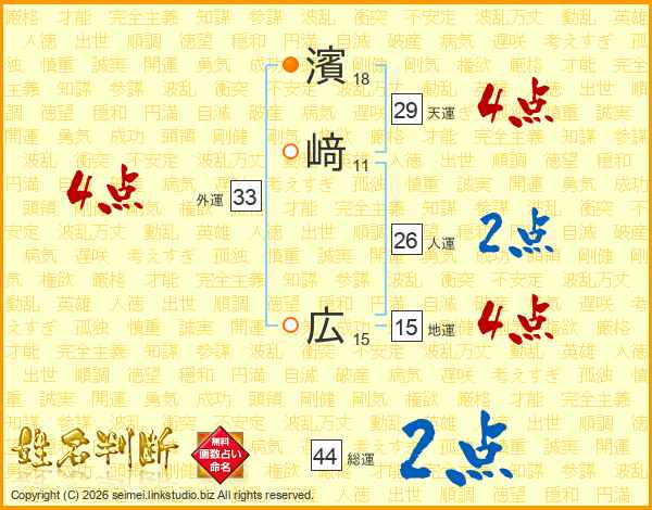 濱﨑広さんの総運は44画の2点!