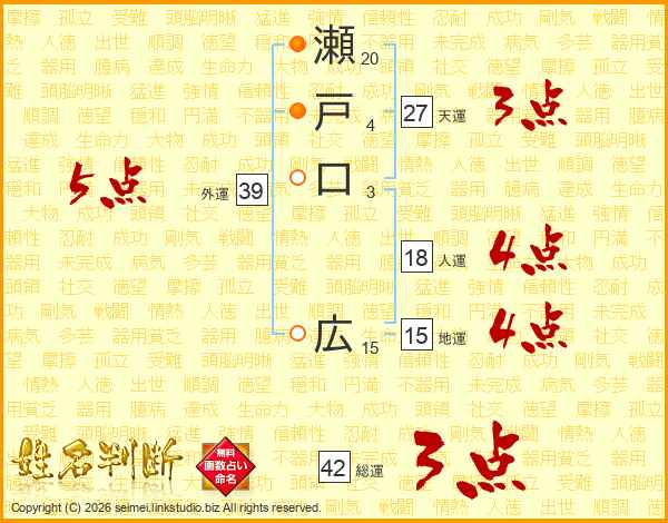 瀬戸口広さんの総運は42画の3点!