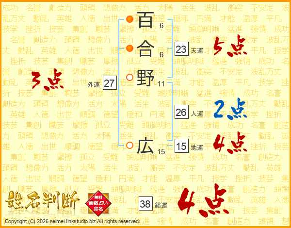 百合野広さんの総運は38画の4点!