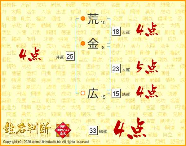 荒金広さんの総運は33画の4点!