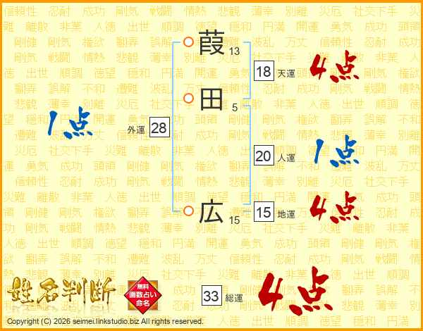 葭田広さんの総運は33画の4点!