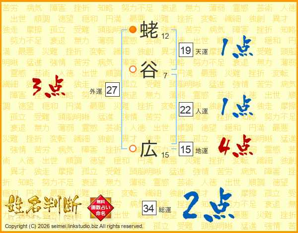 蛯(12画)谷(7画) 広(15画)