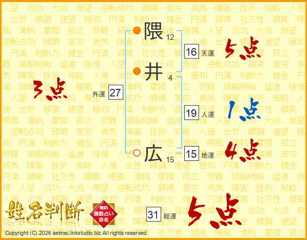 隈井広さんの総運は31画の5点!