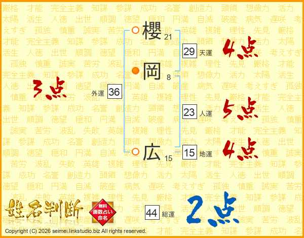 櫻(21画)岡(8画)  広(15画)