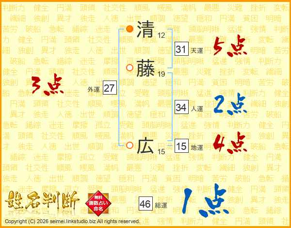 清藤広さんの総運は46画の1点