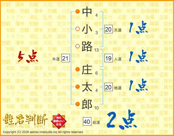 中小路庄太郎さんの総運は40画の2点!
