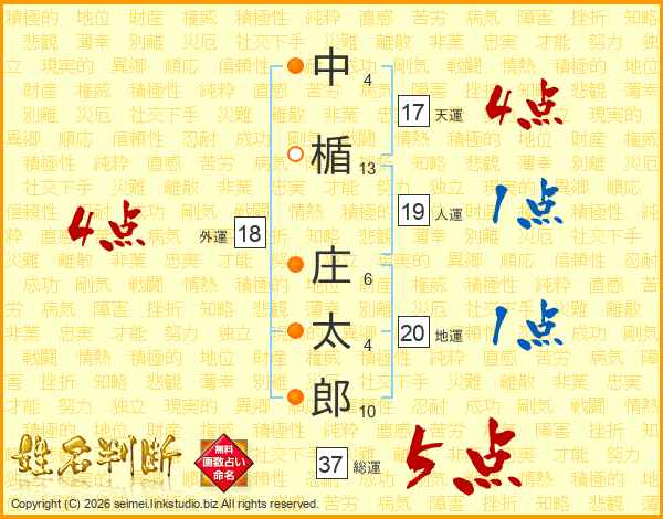 中楯庄太郎さんの総運は37画の5点!