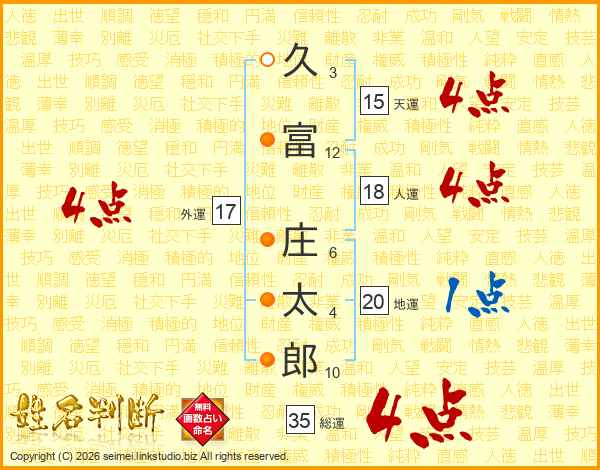 久富庄太郎さんの総運は35画の4点!