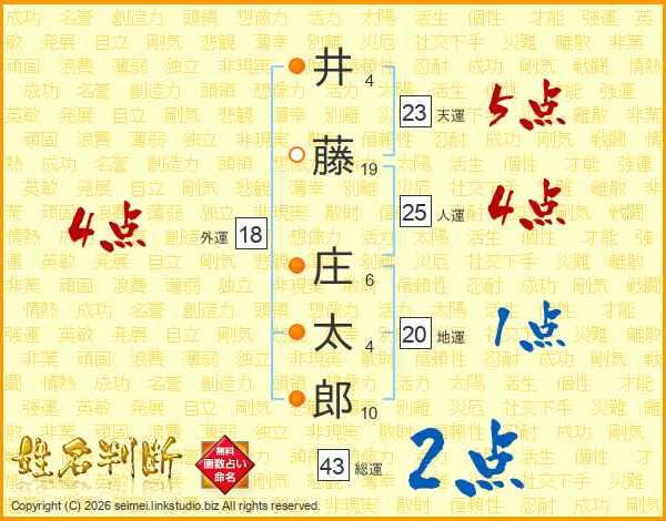 井藤庄太郎さんの総運は43画の2点!