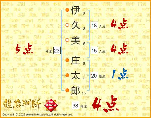 伊久美庄太郎さんの総運は38画の4点!