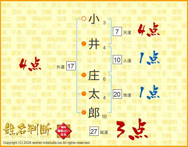 小井庄太郎さんの総運は27画の3点!