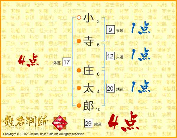 小寺庄太郎さんの総運は29画の4点!