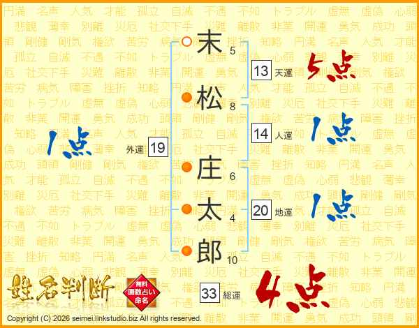 末松庄太郎さんの総運は33画の4点!