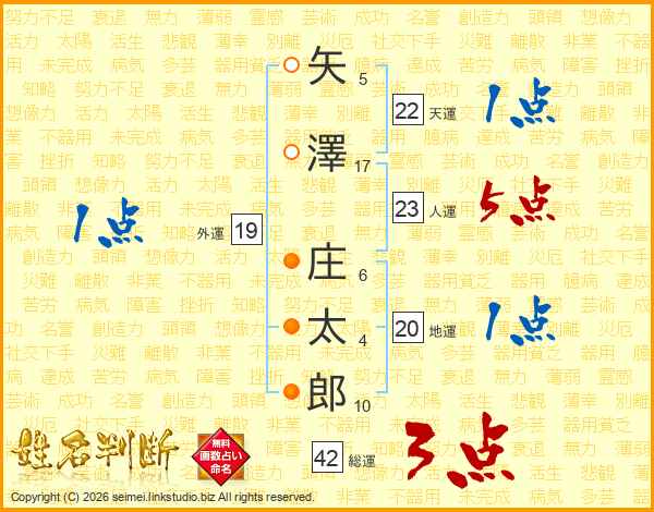 矢(5画)澤(17画) 庄(6画)太(4画)郎(10画)