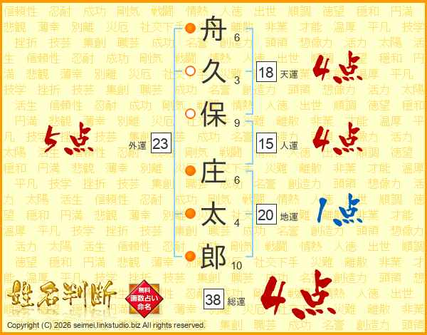 舟(6画)久(3画)保(9画) 庄(6画)太(4画)郎(10画)