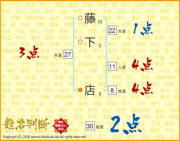 藤下店さんの人運は11画の4点!
