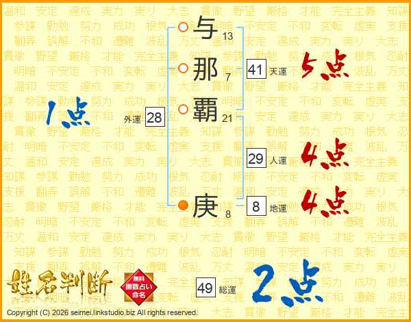 与那覇庚さんの天運は41画の5点!