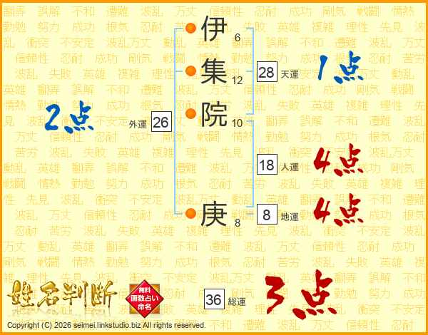 伊集院庚さんの総運は36画の3点!