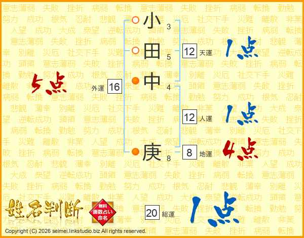 小田中庚さんの天運は12画の1点!