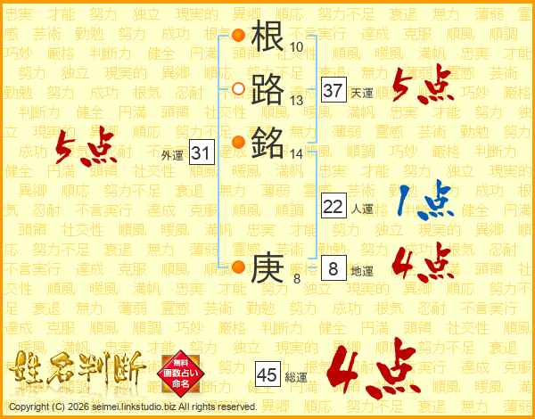 根路銘庚さんの総運は45画の4点!