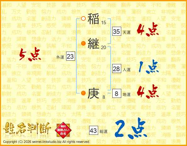 稲継庚さんの総運は43画の2点!