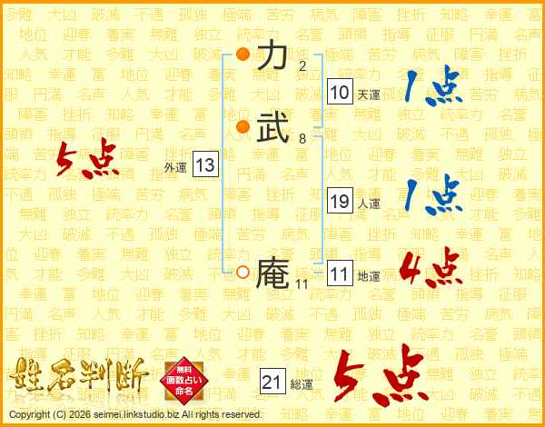 力武庵さんの総運は21画の5点!
