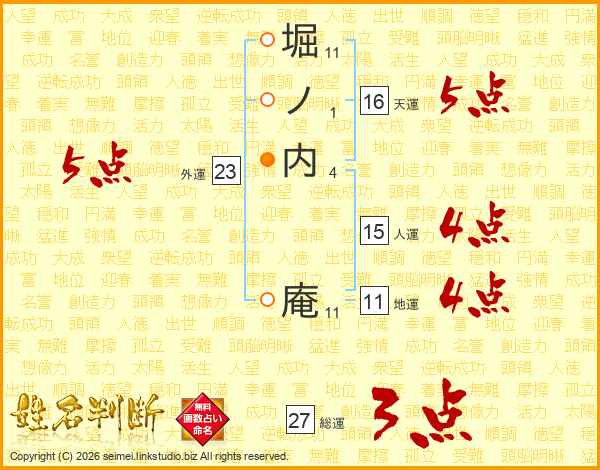 堀ノ内庵さんの総運は27画の3点!
