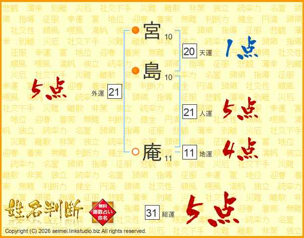 宮島庵さんの総運は31画の5点!