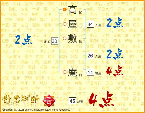高屋敷庵さんの総運は45画の4点!
