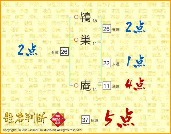 鴇巣庵さんの総運は37画の5点!