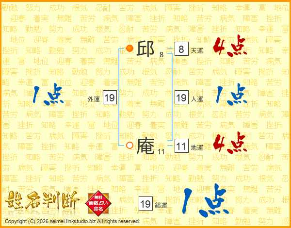 邱庵さんの総運は19画の1点!