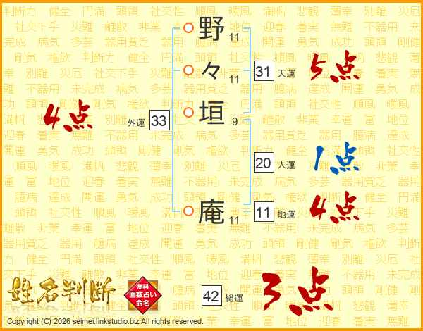 野々垣庵さんの地運は11画の4点!
