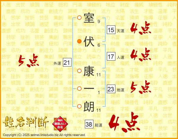 室(9画)伏(6画) 康(11画)一(1画)朗(11画)