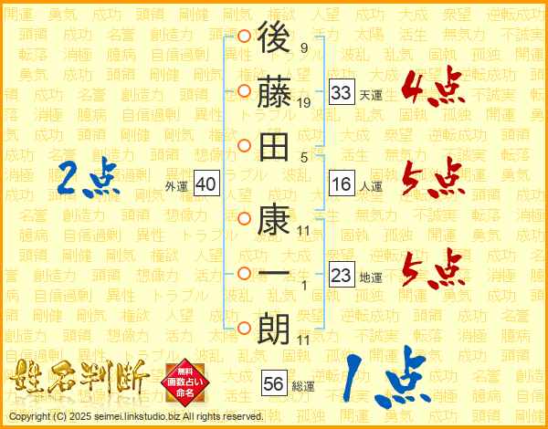 後藤田康一朗さんの総運は56画の1点!