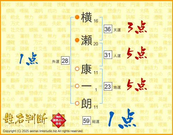 横瀬康一朗さんの総運は59画の1点!