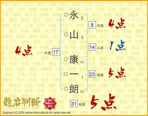 永山康一朗さんの総運は31画の5点!