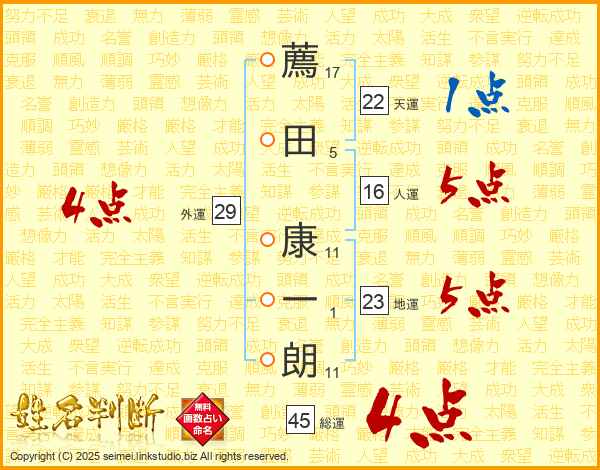 薦(17画)田(5画) 康(11画)一(1画)朗(11画)