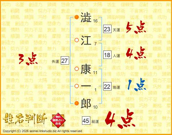 澁江康一郎さんの総運は45画の4点!